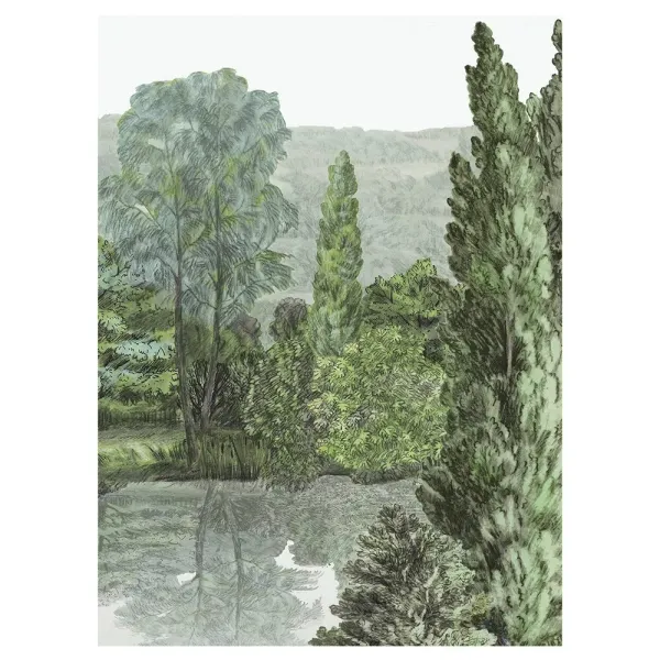 Domaniale French Country Green Landscape Wallpaper - Panel A
