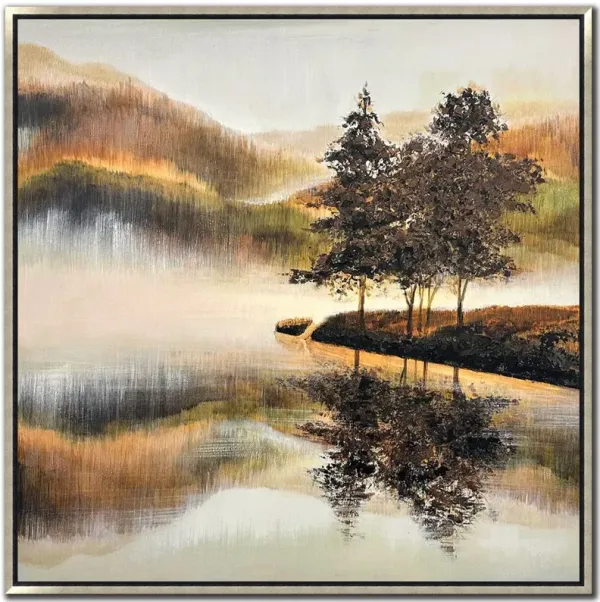 Uttermost Mountain Mist Black/Blue-Green/Dark Gray/Orange/White Hand Painted Canvas