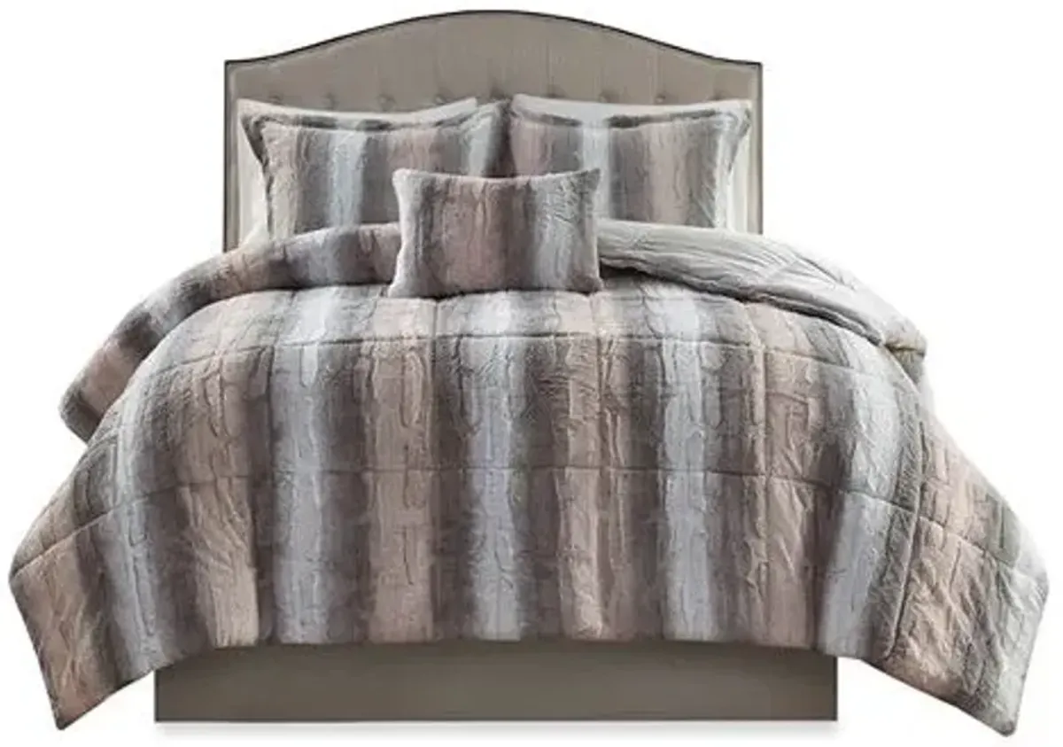 Olliix by Madison Park Zuri Blush and Grey Full/Queen Faux Fur Comforter Set