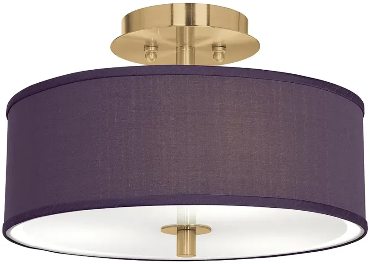 Eggplant Faux Silk Gold 14" Wide Ceiling Light