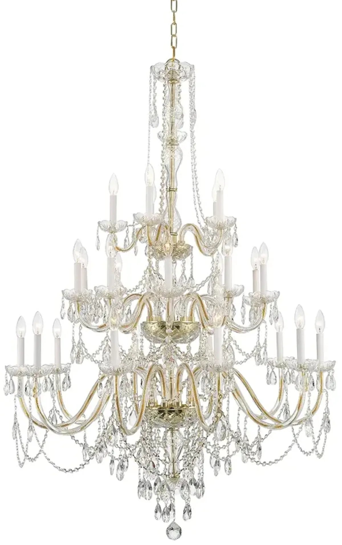 Traditional Crystal 25 Light Polished Brass Chandelier