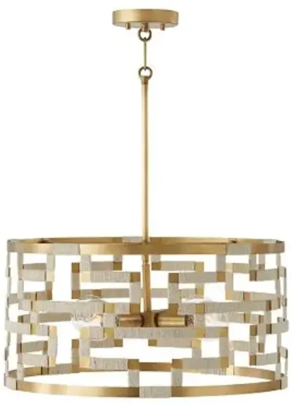 Lily Coastal Beach White Woven Rattan Soft Gold Accent 3 Light Pendant