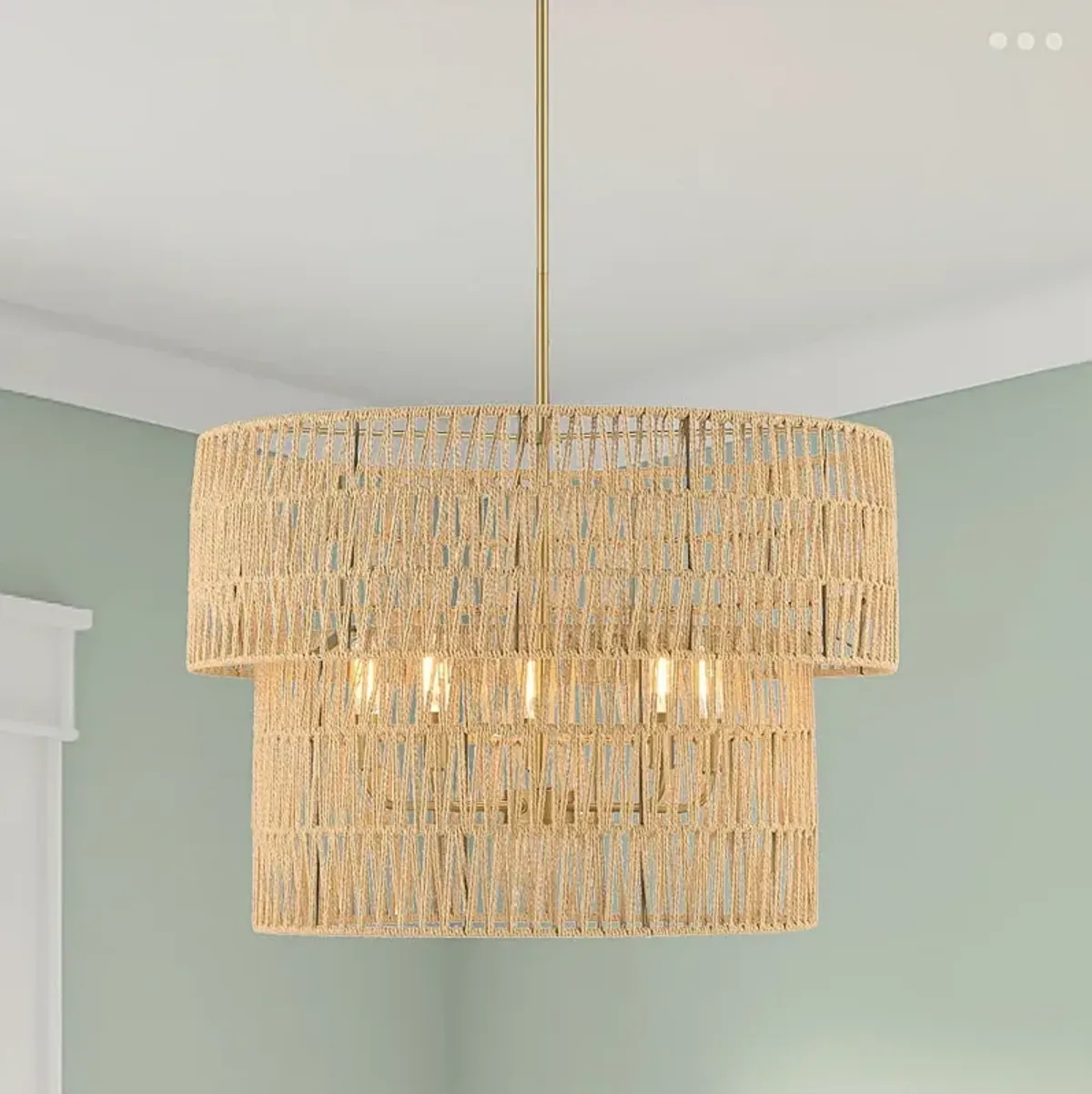 Walter Coastal Beach Natural Brown Jute Cylinder Pendant