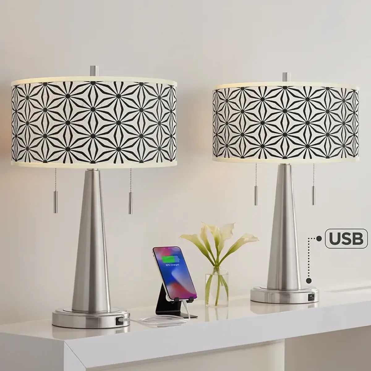 Kaleidoscope Flowers Vicki Brushed Nickel USB Table Lamp Set