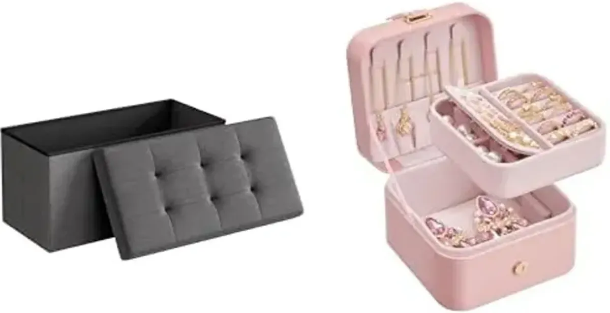 Baxton Studio Sandrine Fabric Ottoman in Grey and Walnut Brown