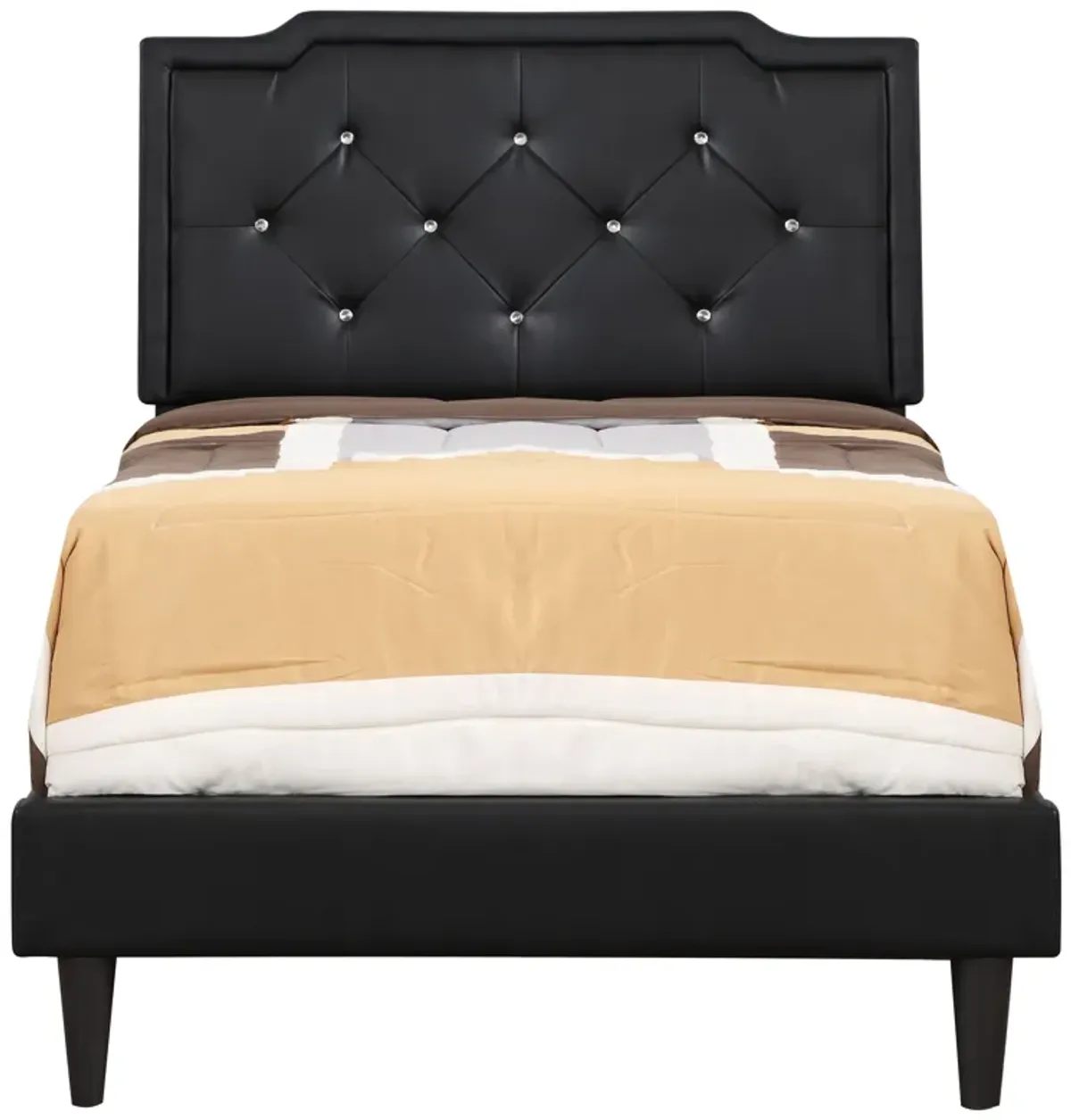 Full/Twin Size Rivet-Tufted Platform Bed with Metal Legs and Wood Slats