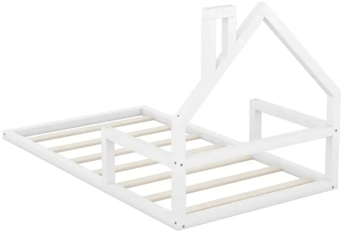 Wooden Platform Bed with Headboard and Wood Slat Support White