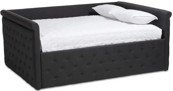 A queen-size daybed corresponds to the dimensions of a standard queen-sized mattress, which is 60 inches wide and 80 inches long.