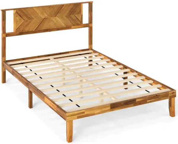 Twin/Full/Queen Size Bed Frame Mid-Century Acacia Wood Platform Bed with Headboard