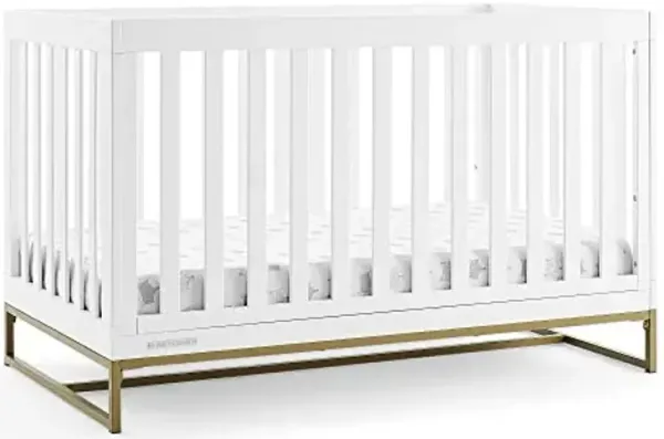 Delta Children Jade 4-in-1 Convertible Crib - Greenguard Gold Certified, Bianca White/Bronze