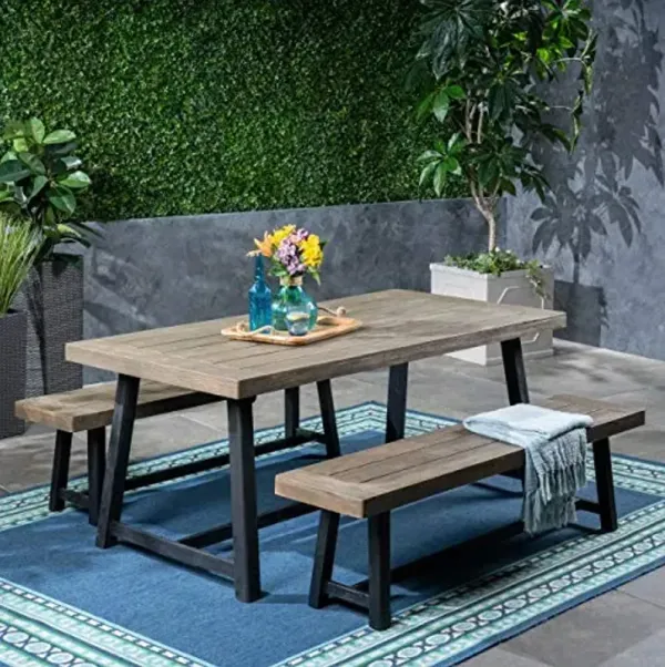 Christopher Knight Home Weir Outdoor Acacia Wood Picnic Set, Gray Finish and Black