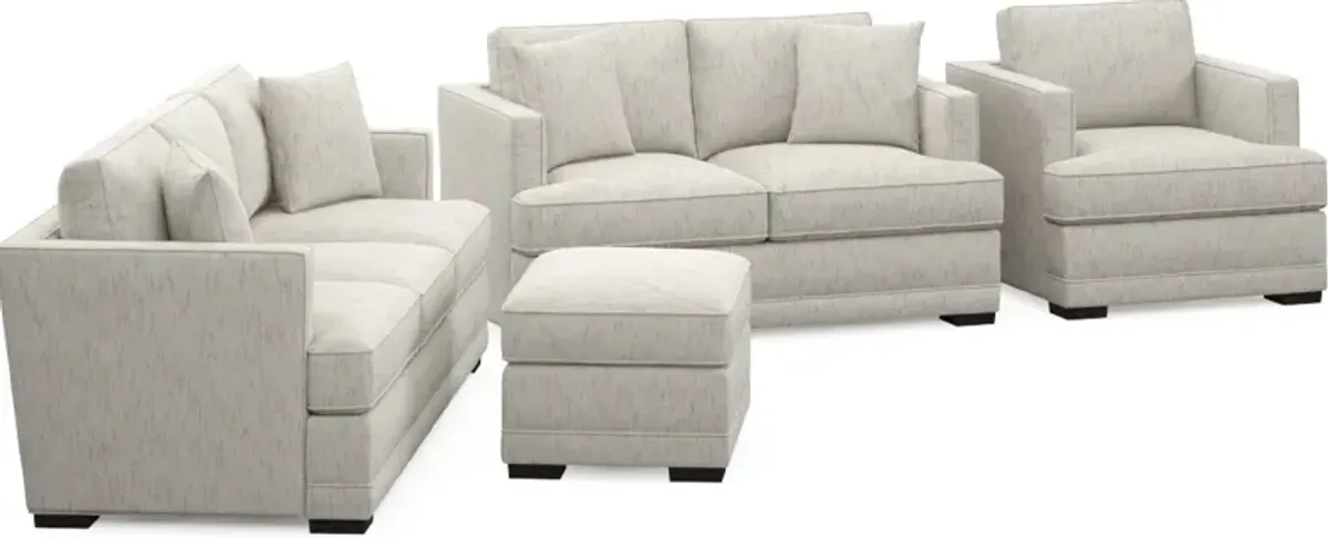 Joseph King Size Bed with 2 Nightstands & 6-Drawer Dresser Set, Ivory Beige