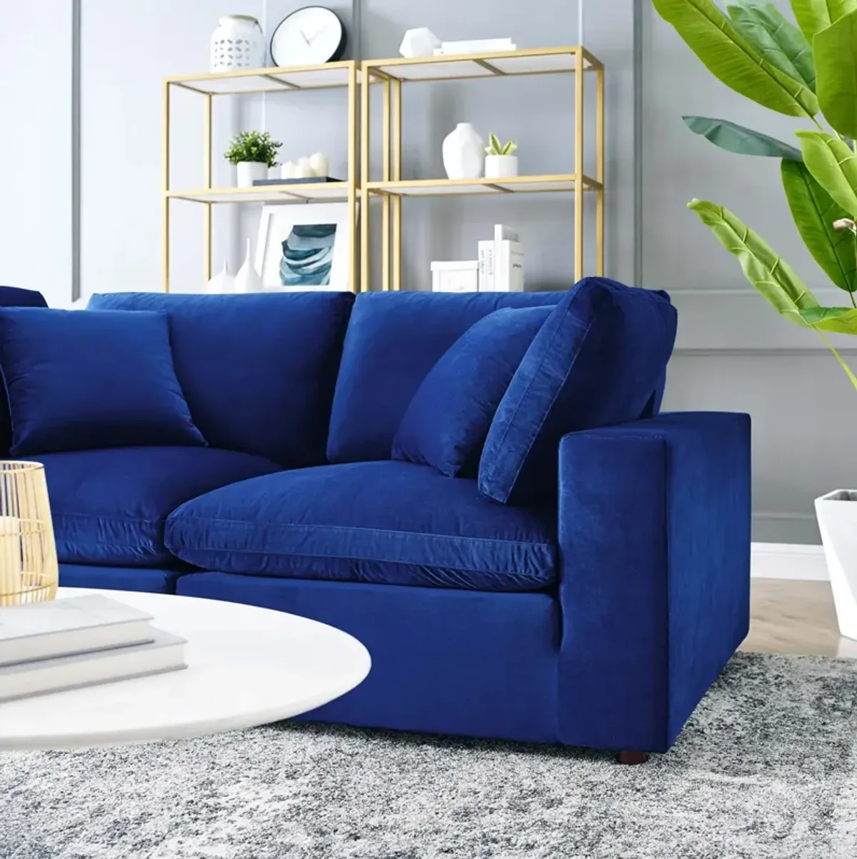 Our collection of blue loveseats includes a variety of styles to help you find the perfect seat for your space. Consider a touch of opulence with a cobalt settee featuring curved armrests, nailhead trim and carved wooden legs. For mid-century modern and contemporary living rooms, try a sleek sapphire blue loveseat with lush velvet fabric and polished metal legs.
