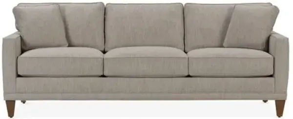 Allen Mid Century Green Velvet Brown Wood Frame Button Tufted Sofa - 91.25"W