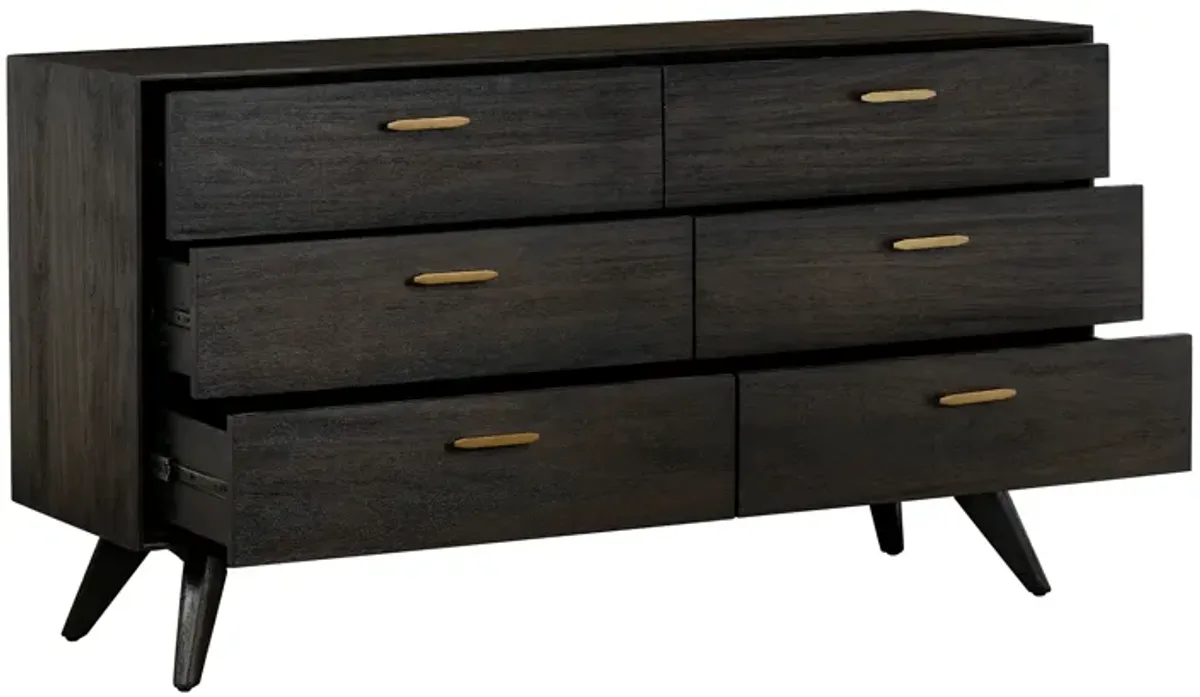Roswell Mid Century Modern Sable Black Oak Double Dresser