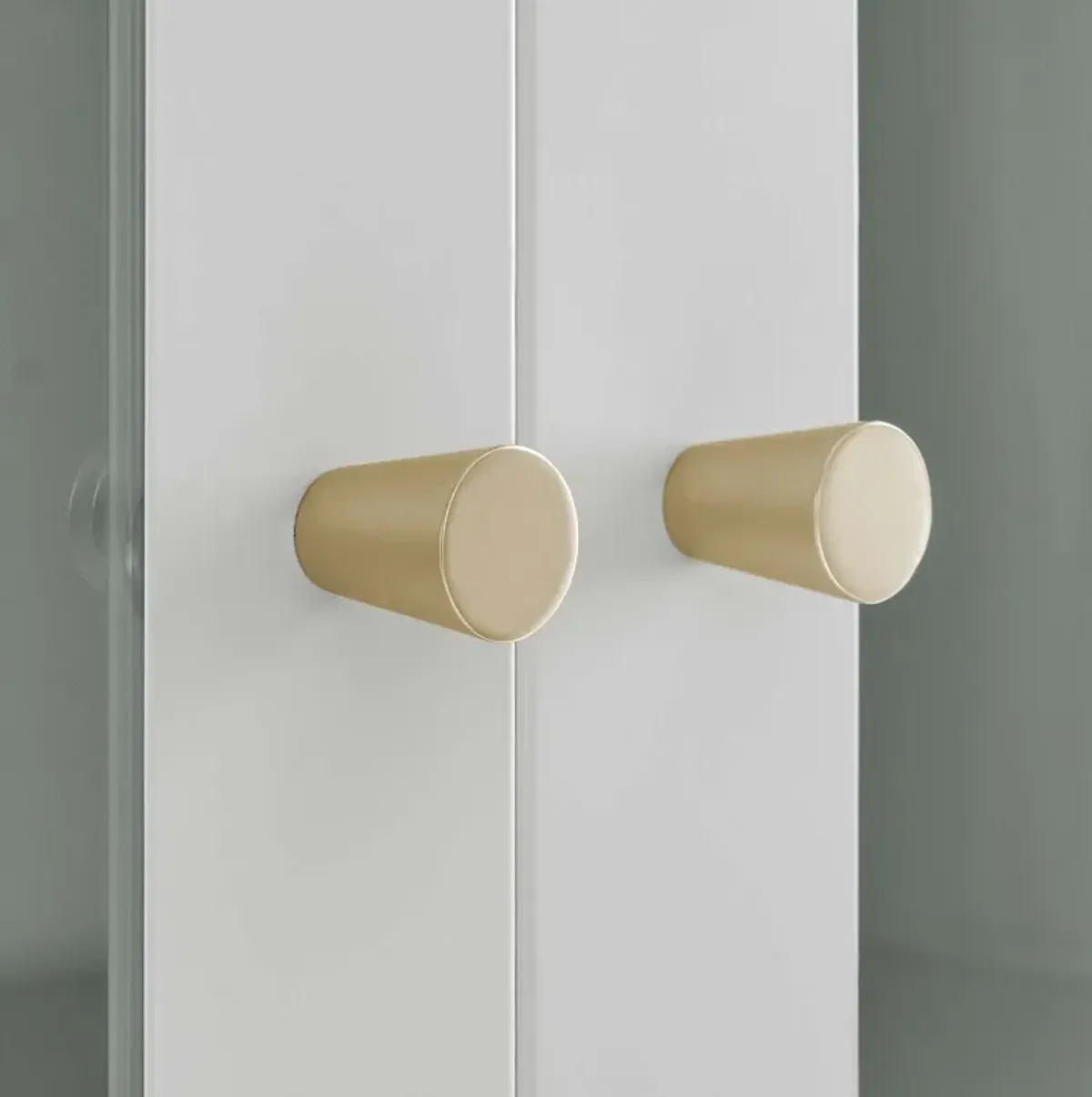Vince Modern Antique Gold Faceted Door Panel Dark Walnut Wood Sideboard