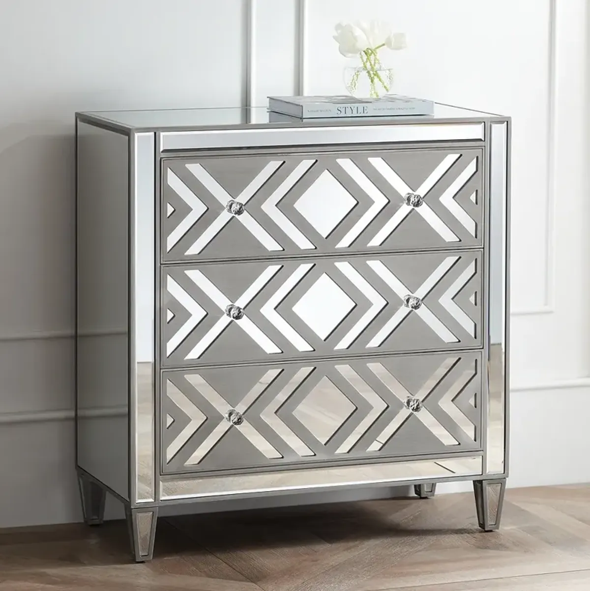 Herringbone 32" Wide 3-Drawer Gray Mirrored Accent Chest