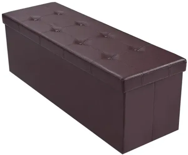 45 Inch Foldable Storage Ottoman Bench Tufted Leather Large Storage Chest