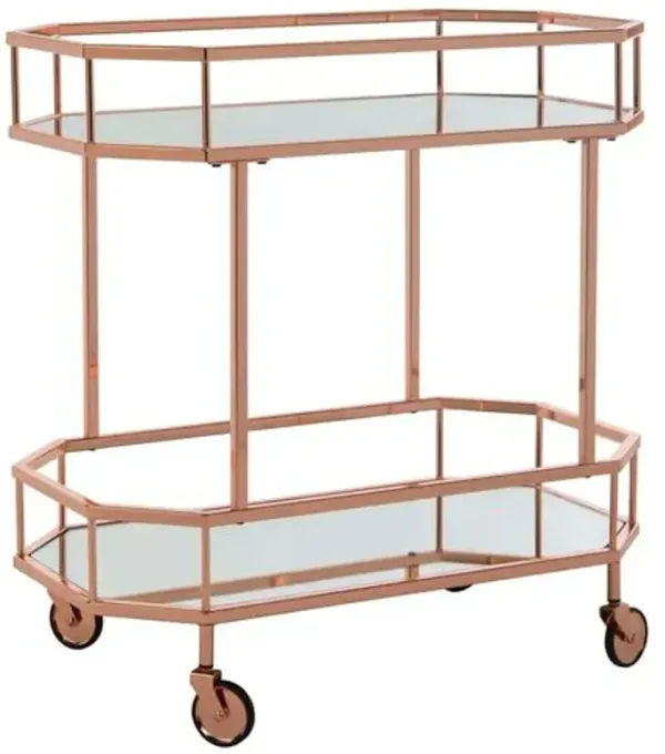 Ivers Rose Gold Metal Mirrored Bar Cart