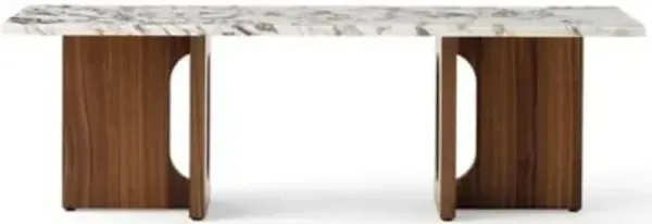 Frane Modern Classic White Marble Brown Oak Rectangular Coffee Table