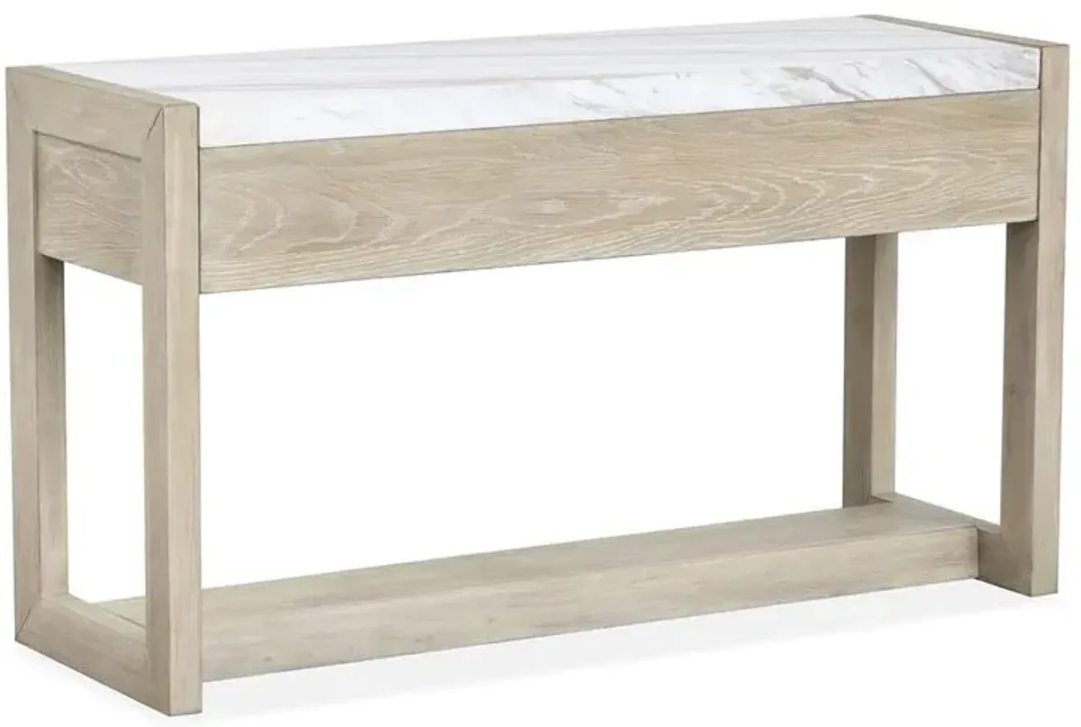 Helen White Marble Top Beige Oak Base Rectangular Console Table