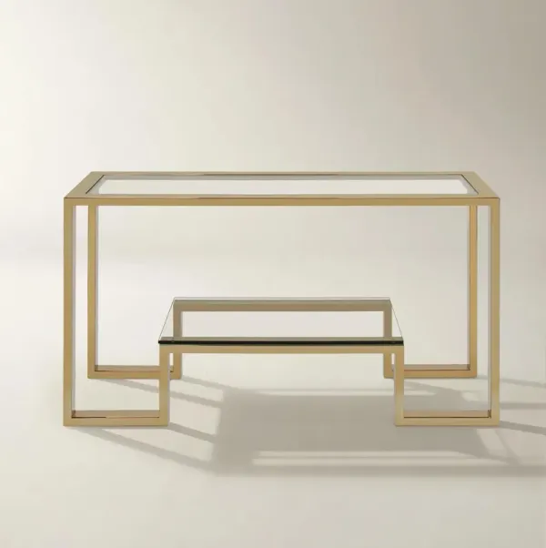Studio 55D Laila 48" Wide Gold-Trimmed Mirrored Console Table