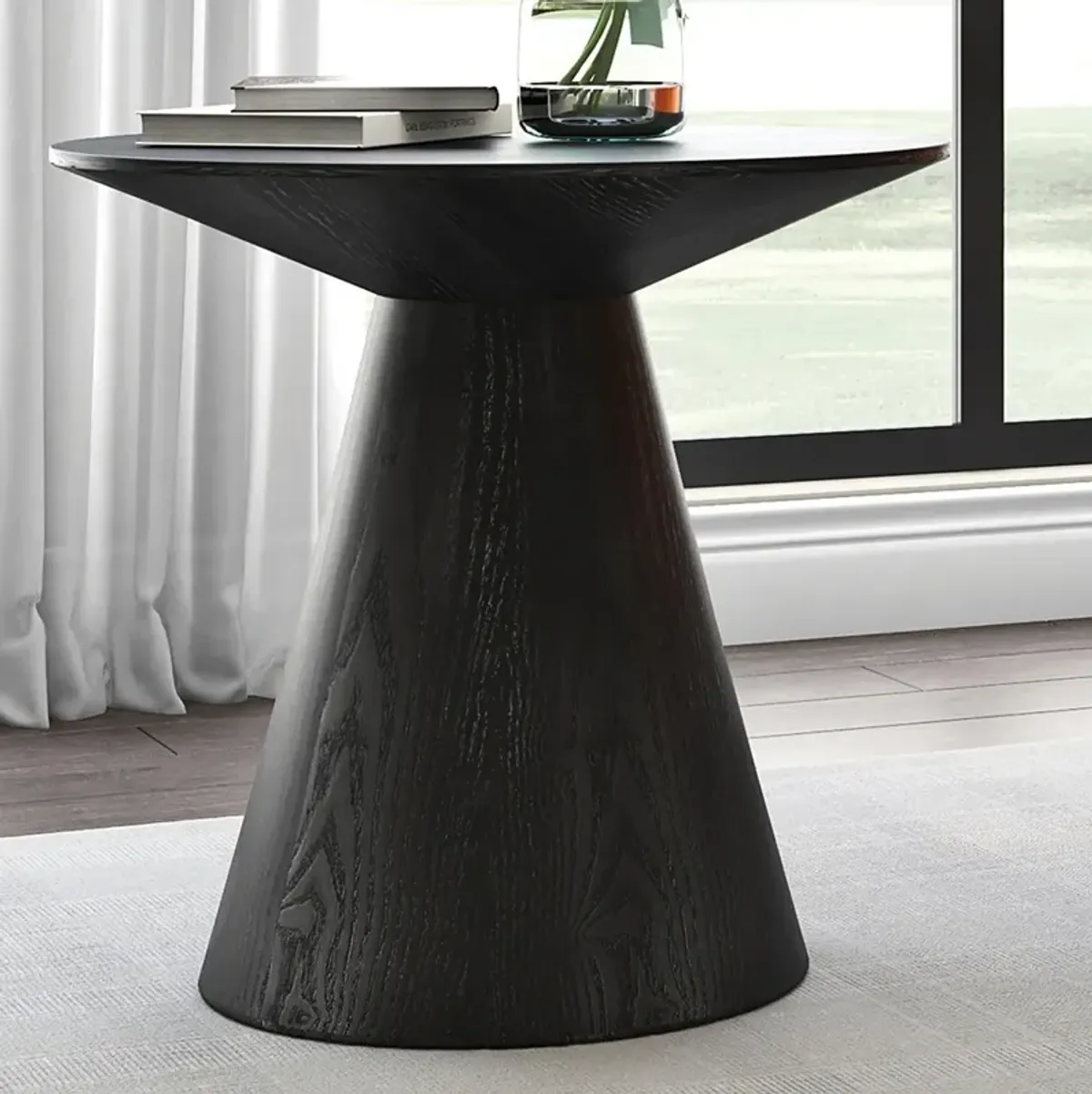Wesley 23 1/2"W Ash Veneered Matte Black Round Side Table
