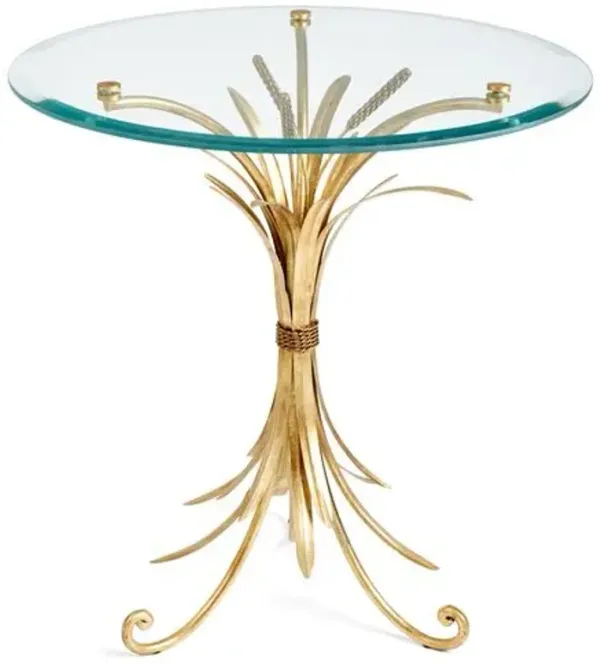 Leilani French Country Taupe Silver Leaf Metal Glass Side Table