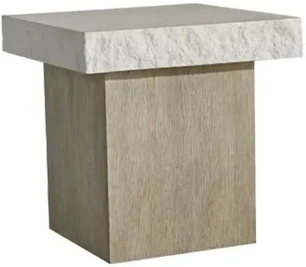 Palecek Ellory Modern Classic Beige Marble Tan Leather Side Table - 13"