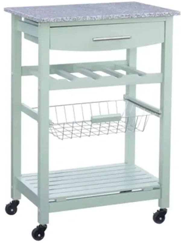 Zoey Green Kitchen Cart Granite Top