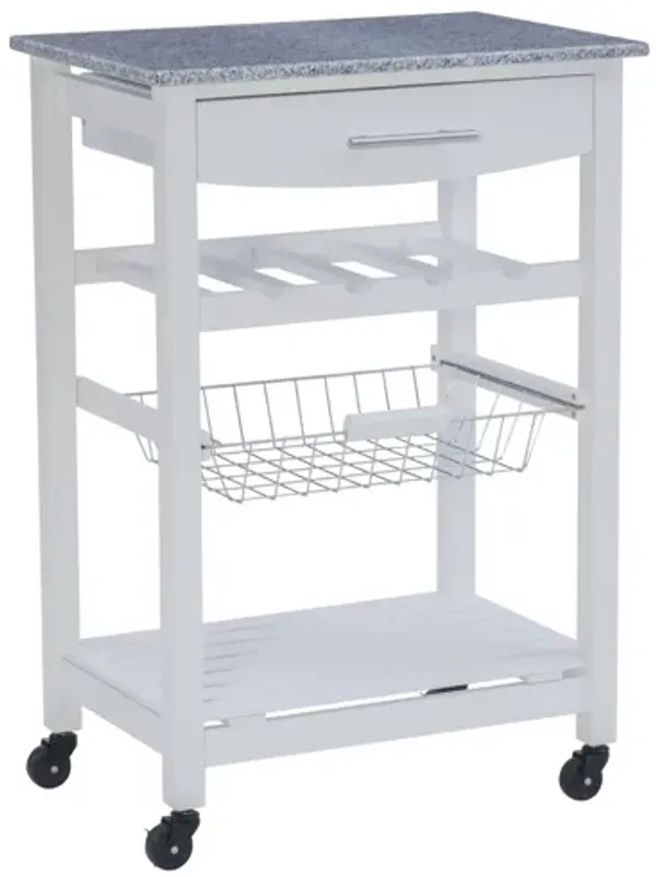 Zoey White Kitchen Cart Granite Top