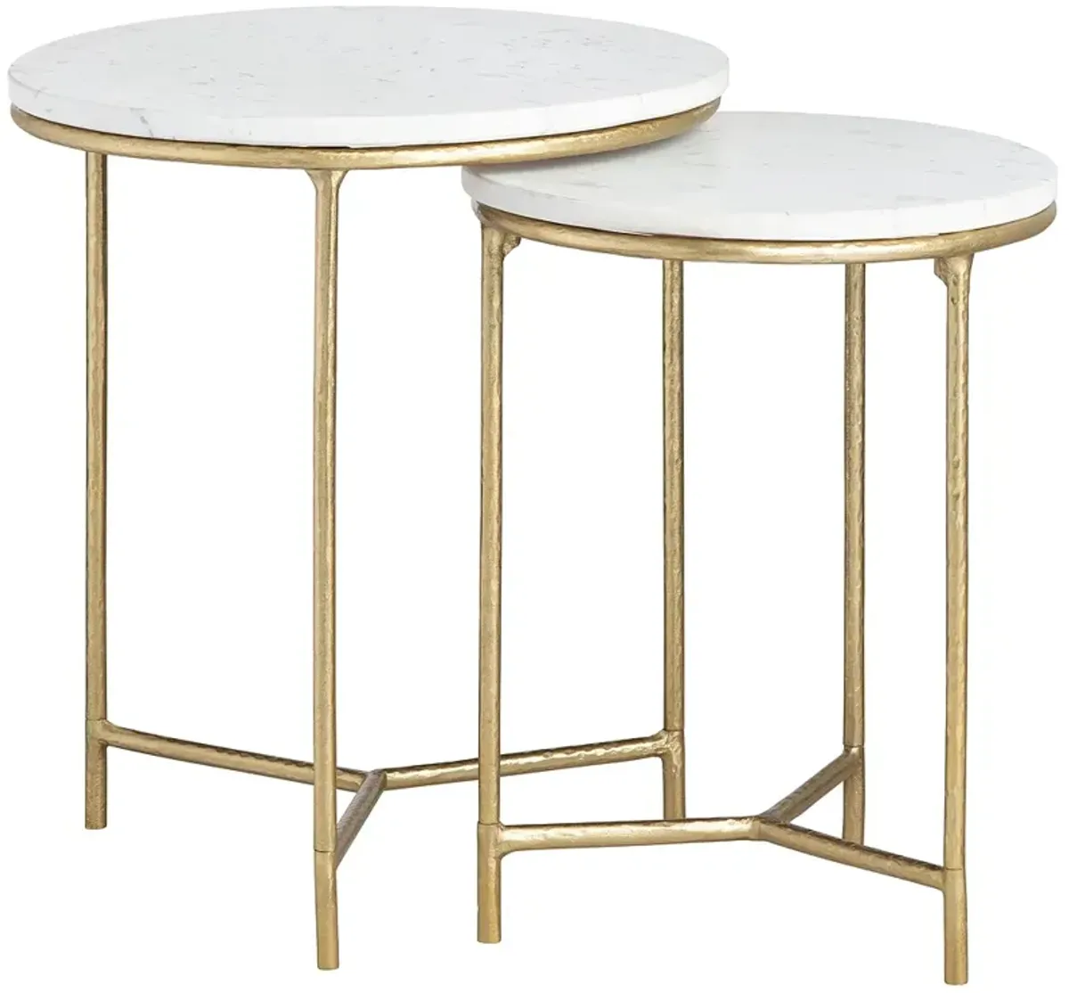 Set of 2 Yurik Marble Top End Tables - White/Gold