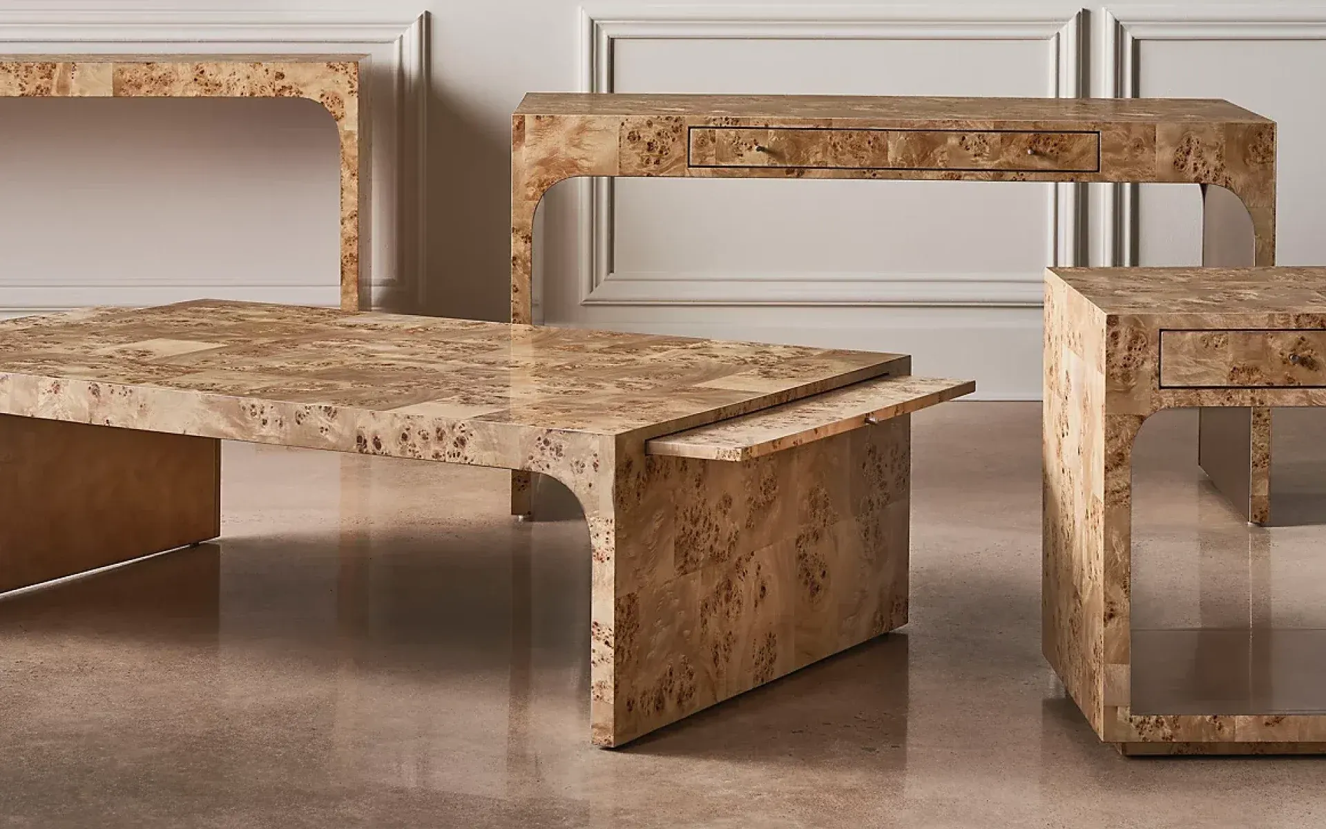 Whether you choose a coffee table with a live edge, rough texture, and deep, rich tones for your rustic design or an office desk with smooth, fine grain featuring delicate, light swirls in creamy tones for your modern decor, your burl wood piece is sure to be an investment you will treasure for many years.