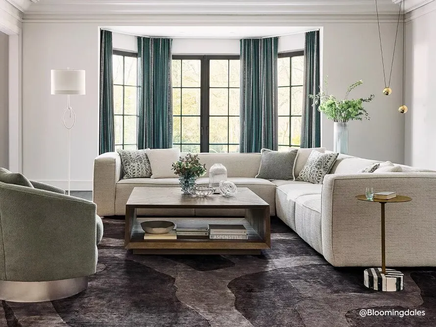 3. Select compact L-shaped sectional pieces for smaller rooms to avoid overcrowding and oversized pieces to bring warmth to larger rooms.