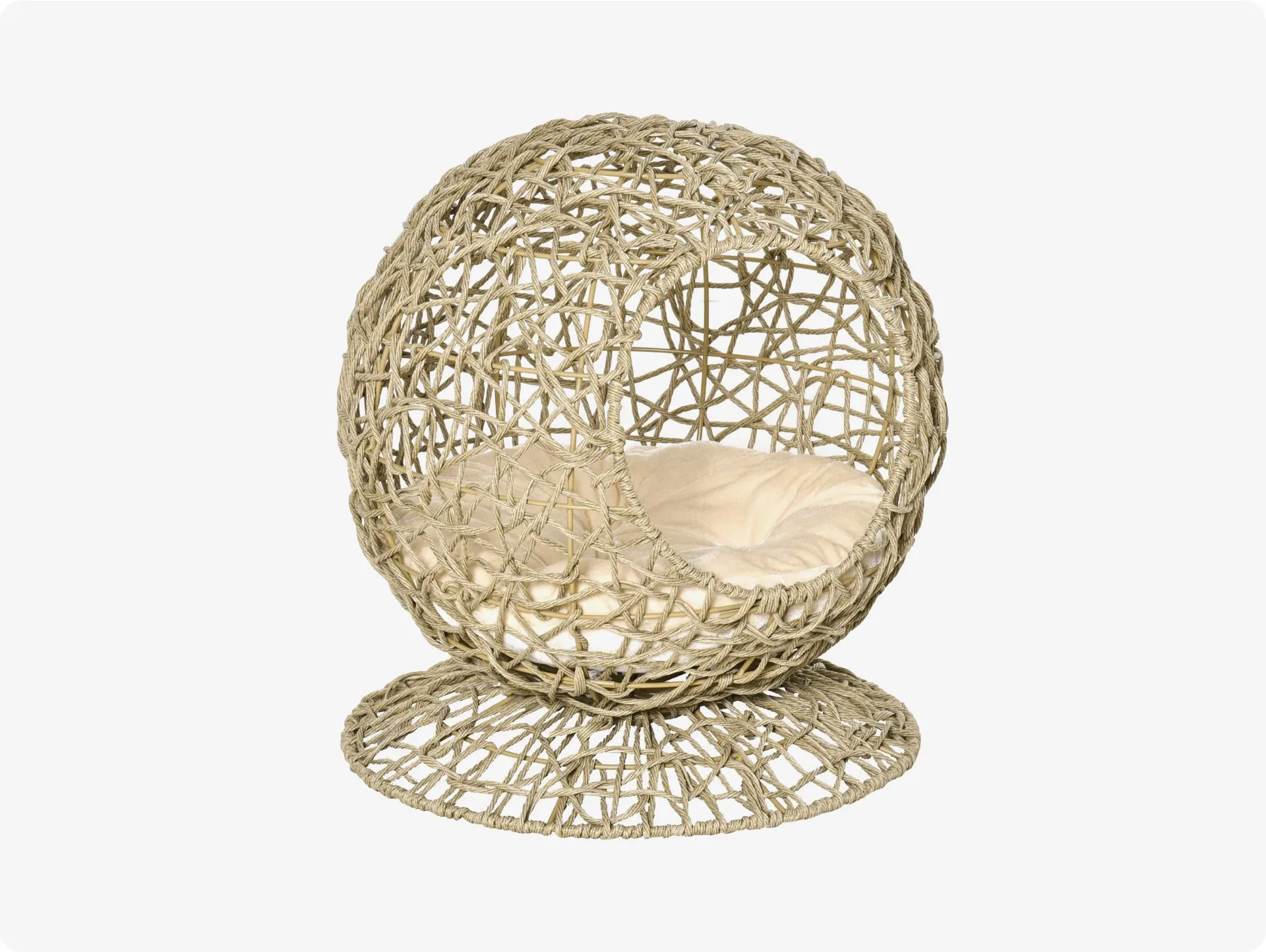 Treat your cat to a coastal resort aesthetic with a wicker cat bed that can seamlessly blend in as a piece of decor in a corner. The boho chic sphere is cozy yet airy. The rare combination allows for great airflow and ventilation for cats that are trying to stay cool through warm nights.