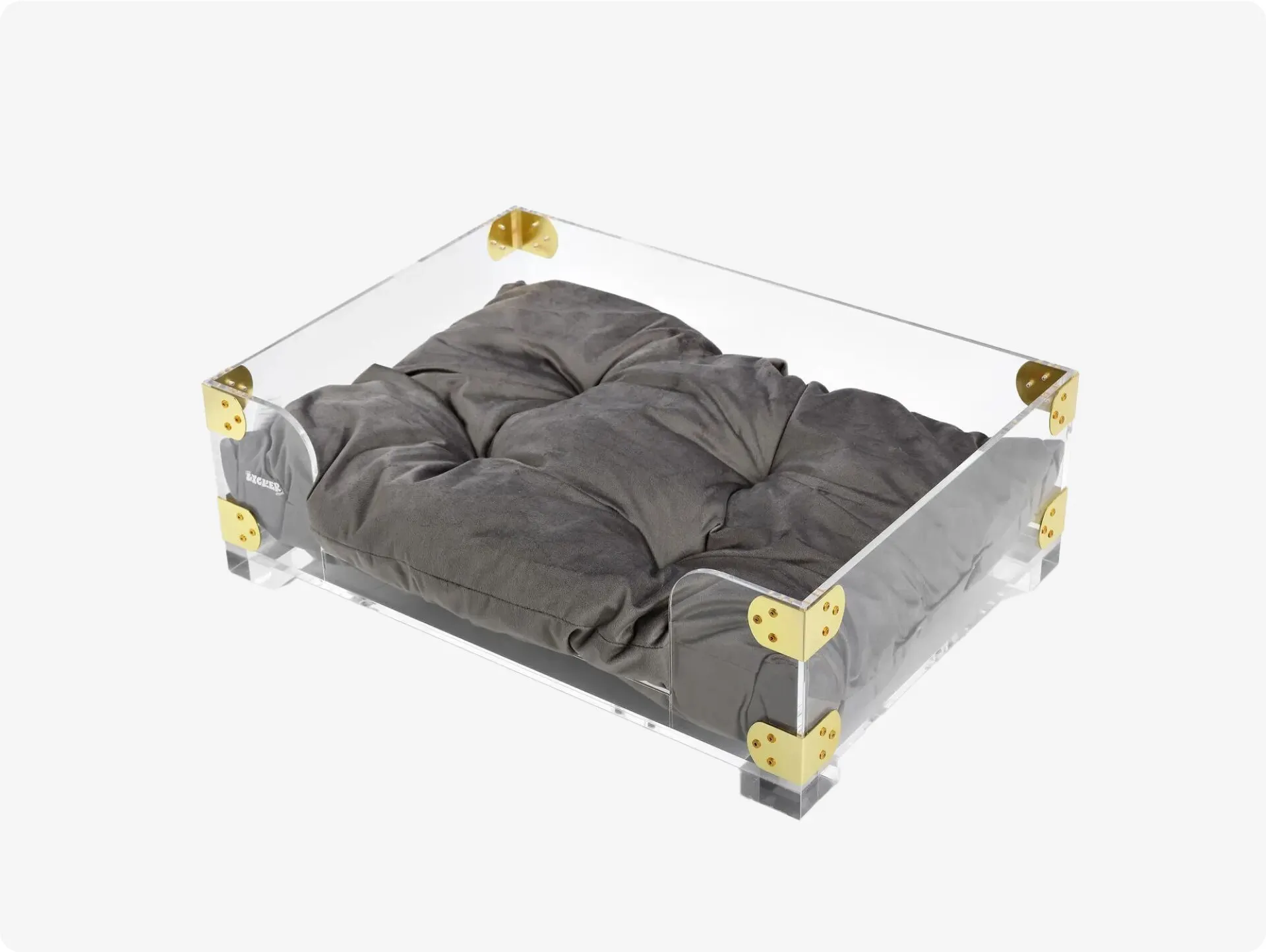 If your dog or cat is the head of the household, it’s time to make their title official with a luxurious throne. The mini chesterfield sofa is ready to make a statement in a glam-style home. To go above and beyond, style your room with complementary gold decor and lamps that match the sofa’s gleaming hardware.
