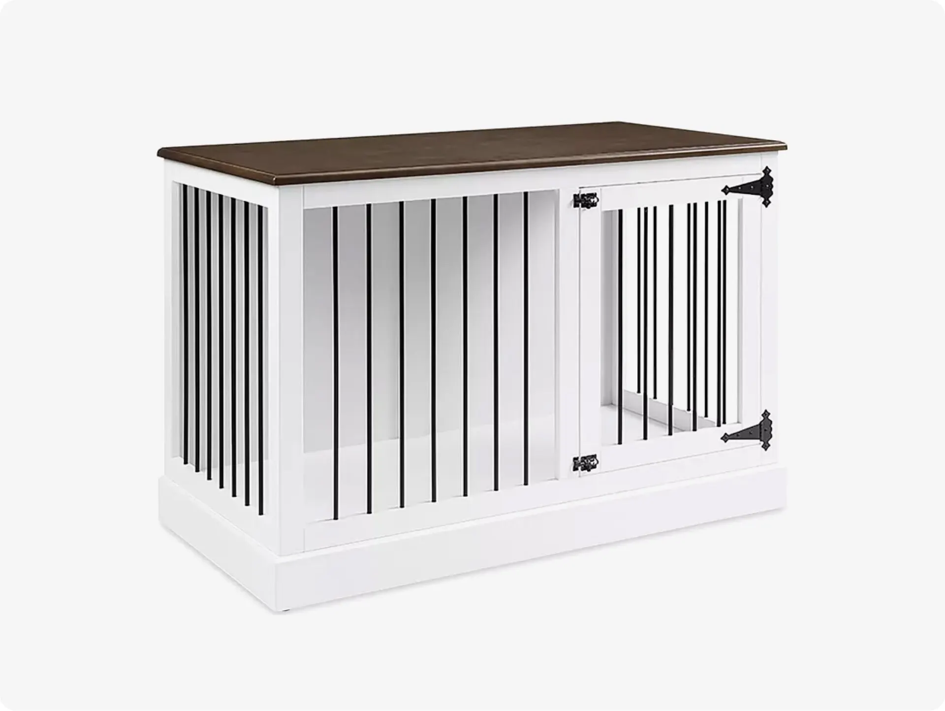 If your dog can’t get enough of the backyard, give them the option of sleeping in an old-fashioned doghouse. The classic A-frame roof makes us nostalgic for Snoopy cartoons while the high-quality wood construction gives it an outdoorsy cabin vibe that complements a Western or rustic style.
