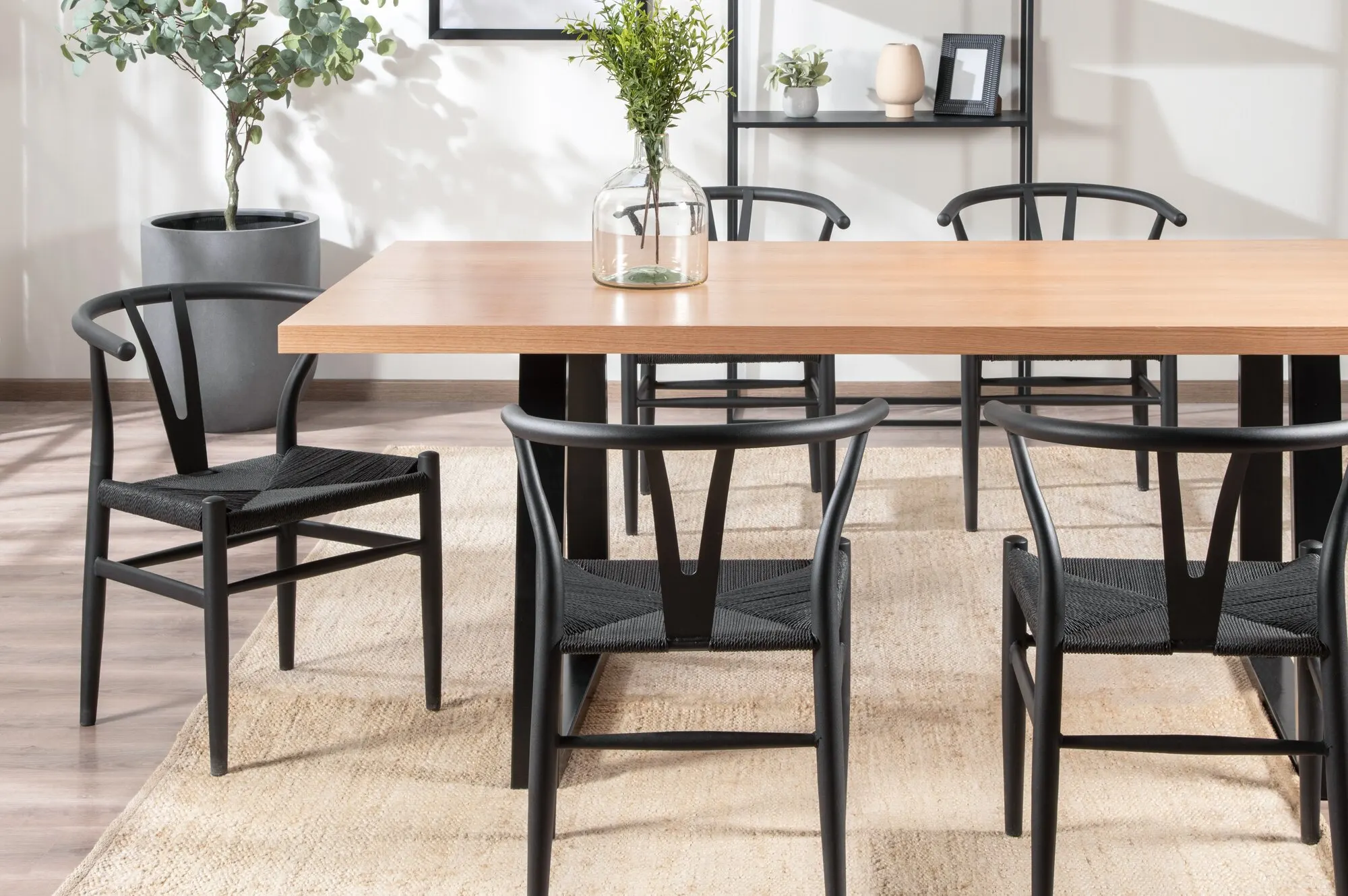 When paired with a wood table, black dining chairs can provide a layered and striking aesthetic that feels fresh, high contrast, and stylish.