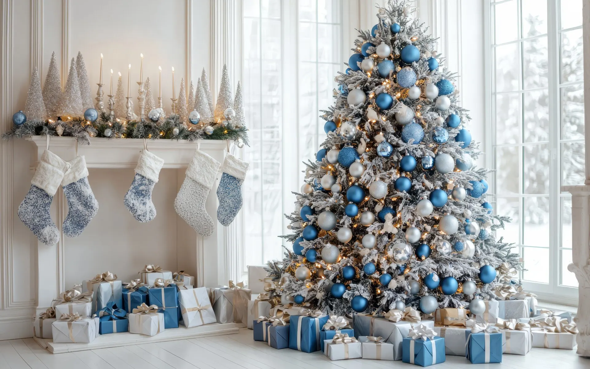 Tie the look together with a blue tree skirt or blue ribbons. For extra sparkle, wrap the tree in blue Christmas lights.
