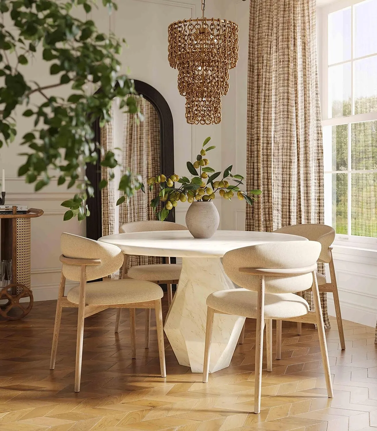 Your dining area is the perfect place to lean into the more boho elements of California casual. Choose a rustic wood table for your centerpiece and pair it with a variety of mixed-and-matched dining chairs. The eclectic mix will create plenty of visual interest and may even become a conversation piece for your guests.