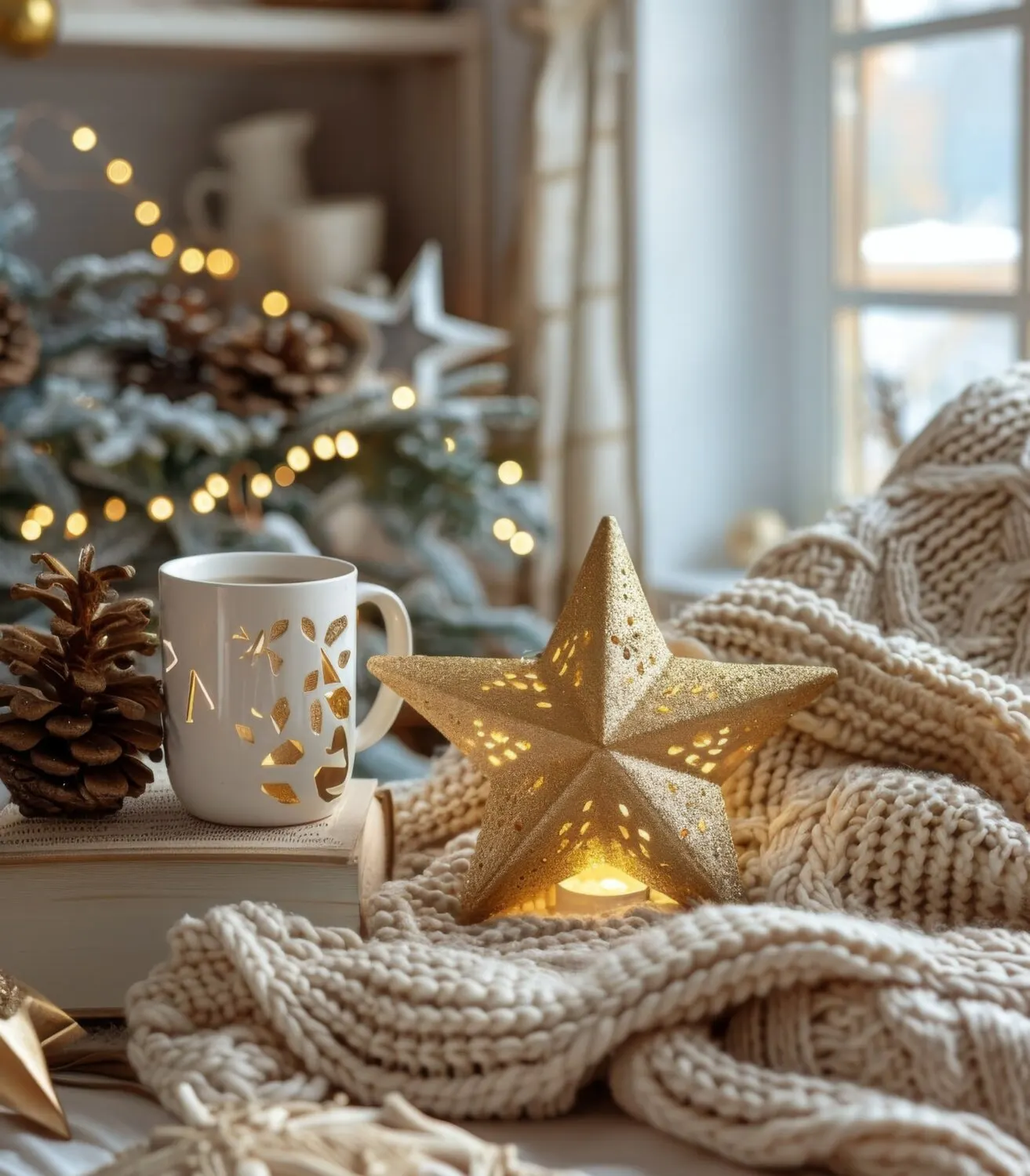 To emulate the unparalleled coziness and warmth of cottagecore style, it’s time to layer up. We like to mix different textures to create not only warmth but also depth. Think knitted and chunky throws, soft wool or sherpa blankets, and even touches of linen or burlap accents for a rustic overtone. Another small but effective detail is to add bows and ribbons throughout your cottagecore Christmas decorations — from the Christmas tree to the garlands and wreaths decorating your mantel.