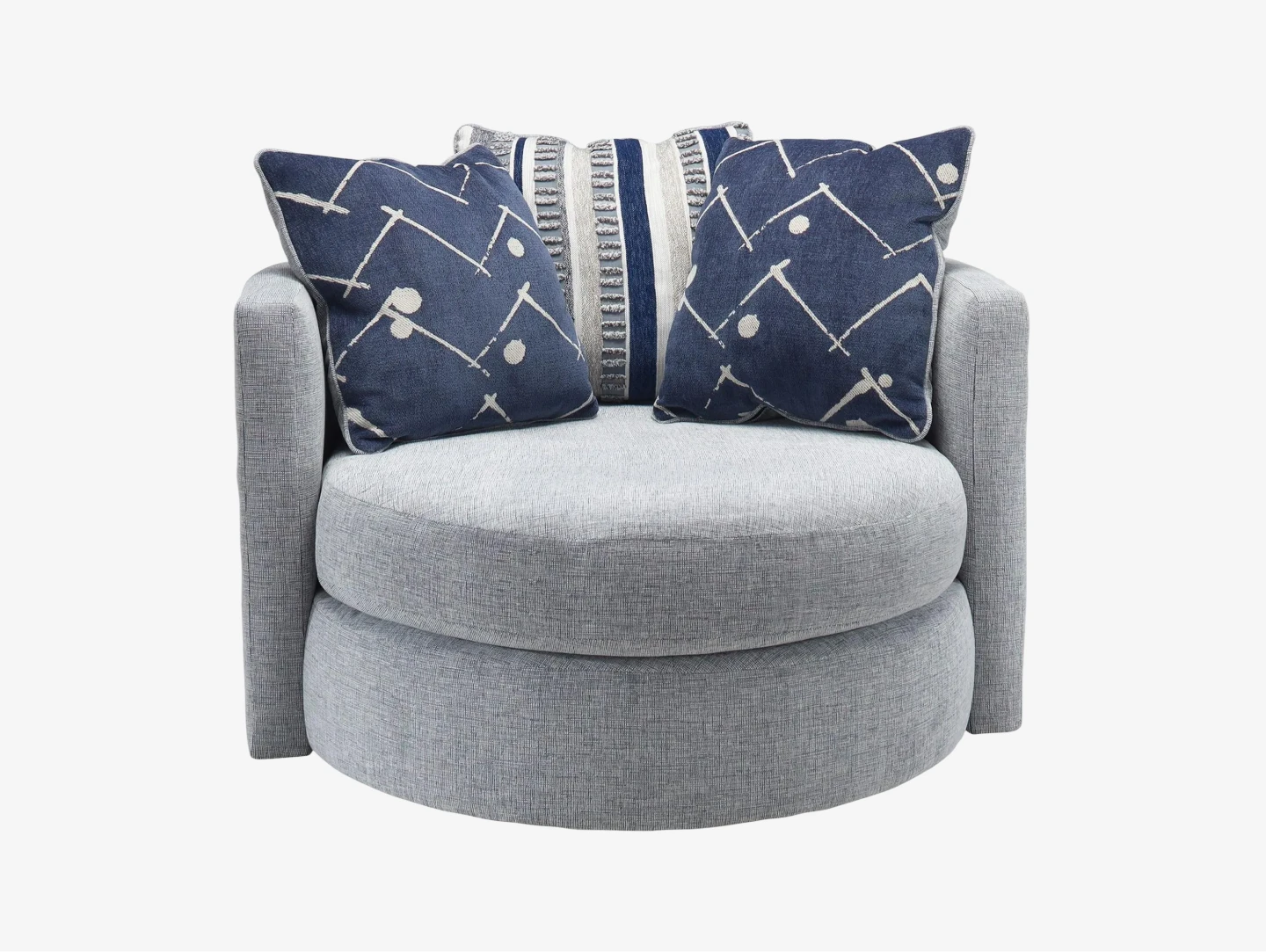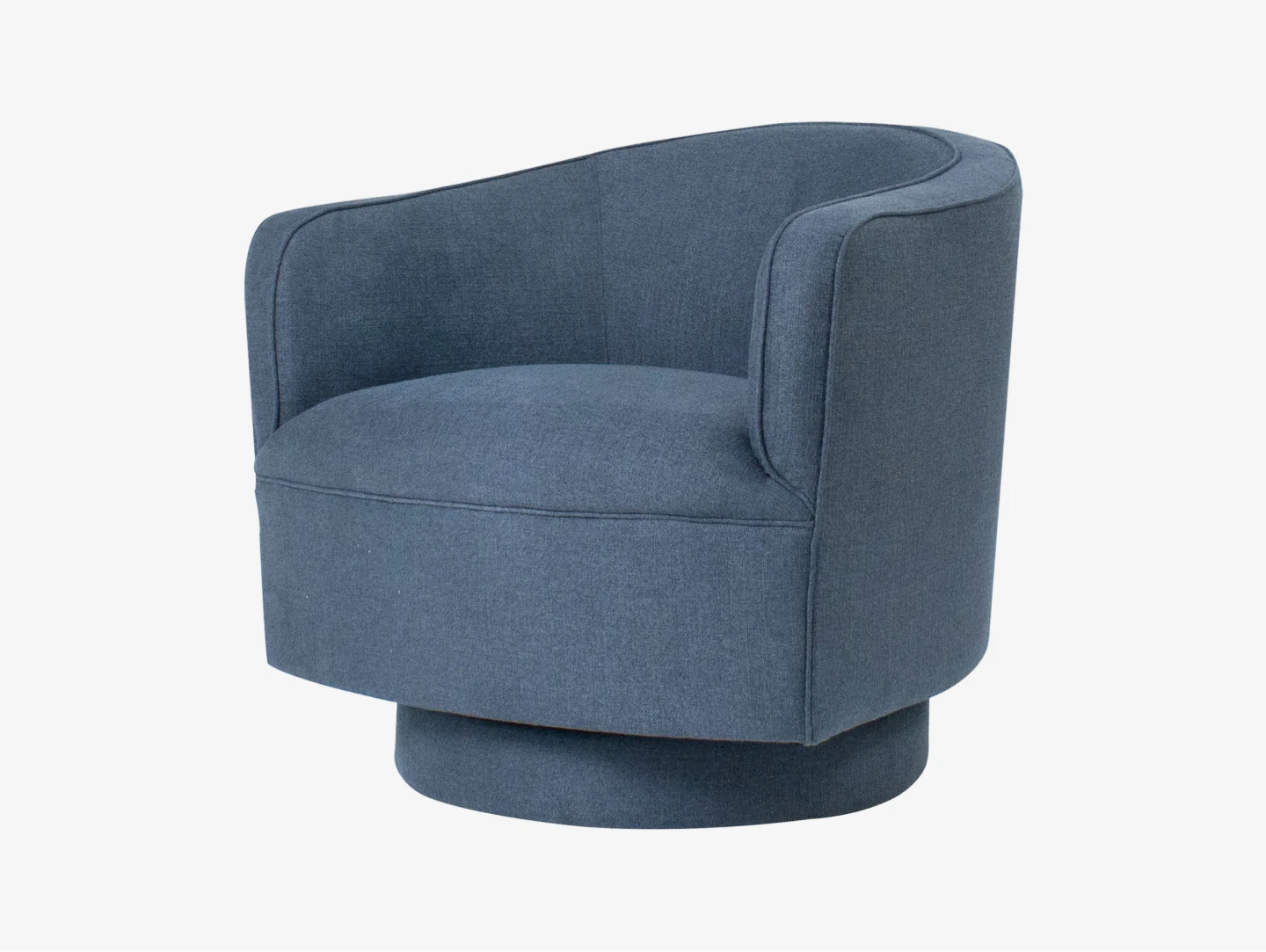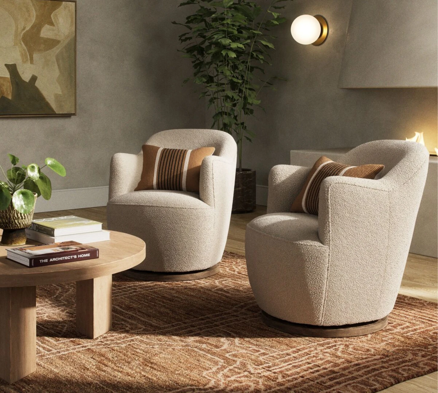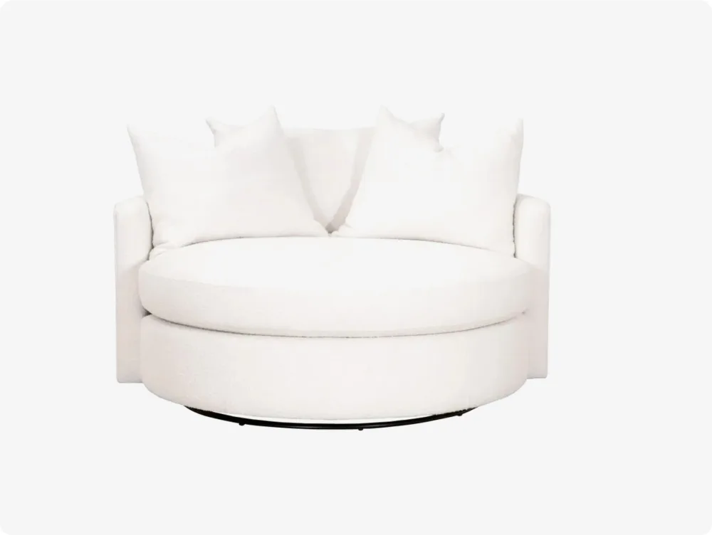 Upholstered swivel chairs are another top choice. This furniture gives you a 360-view of the room, so you’ll never have to worry about straining your neck to see the TV or someone across the room.