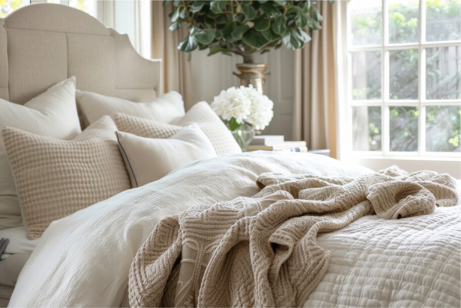 Embrace cozy fabrics like curtains, cushions, and throws to add warmth to the room