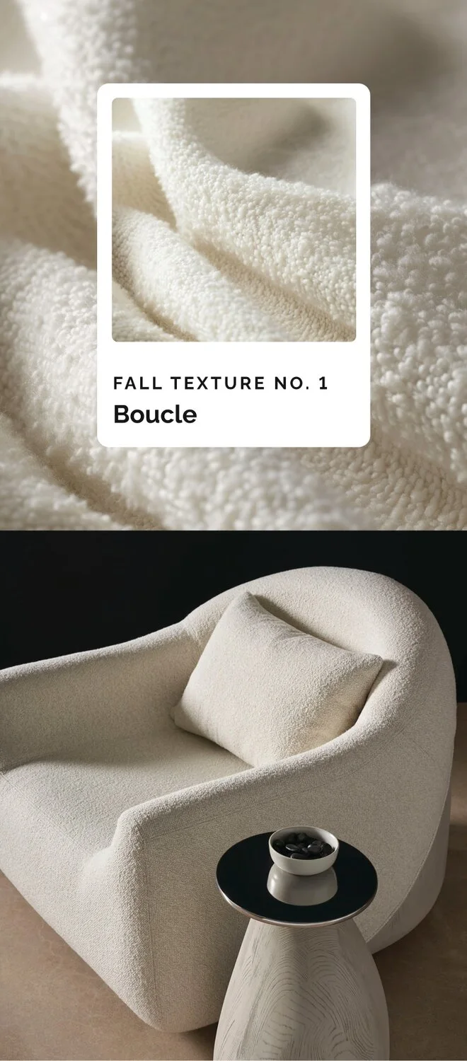 Summer is the season for ethereal and airy materials, from linen to rattan. But as the temperature dips and the leaves turn colors, we naturally yearn for thicker and warmer upholstery. Here are three fall textures you’ll see trending this fall and winter — whether you’re swapping out small accent pieces like throw pillows and drapes or itching to swathe your home in a cozy style year-round.
