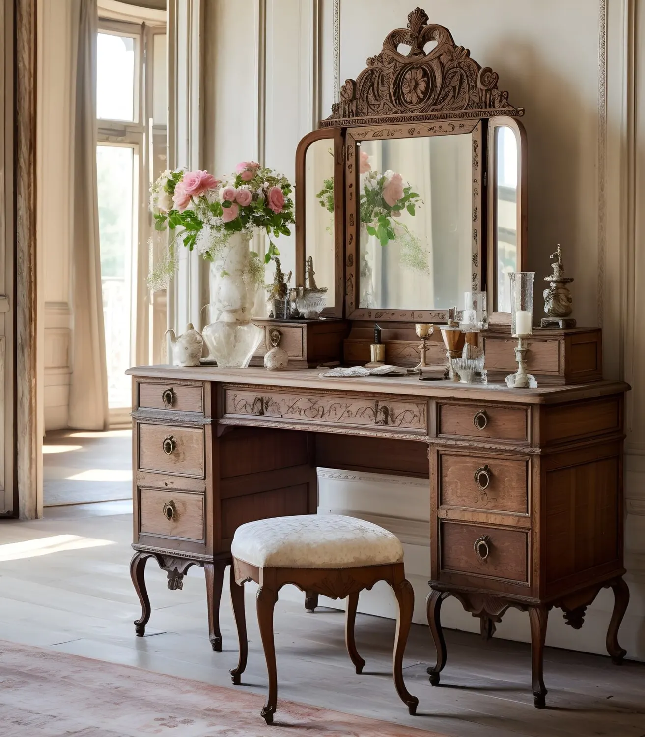 Invest in a secretary desk, a unique piece that originated in France in the 17th century. With its ornate detailing, storage space, and hide-away desk surface, it's the epitome of beauty and functionality. Offset it with a modern desk chair.