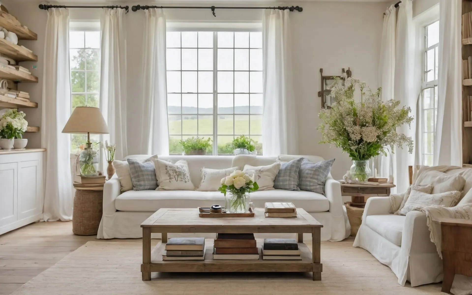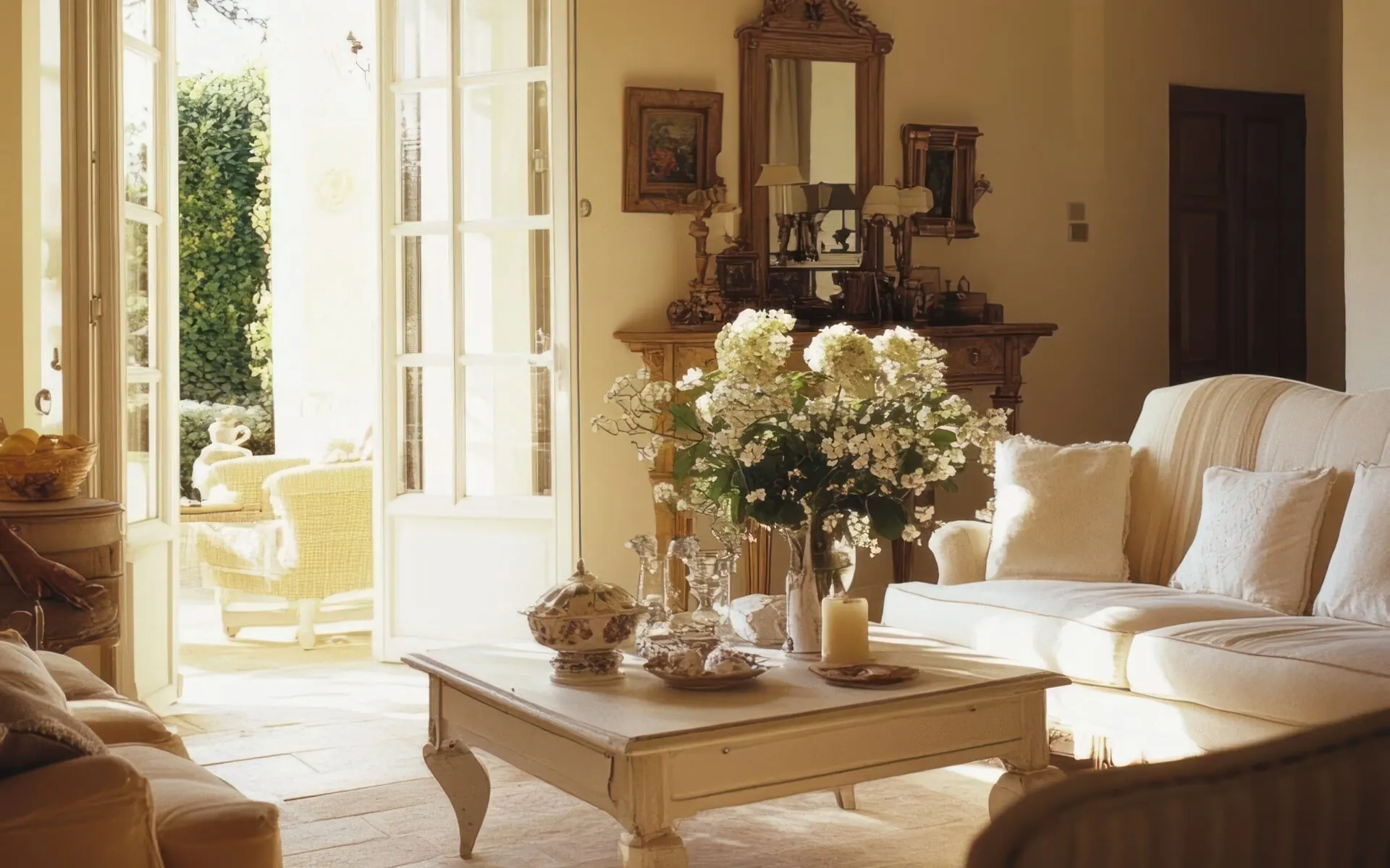 Lean into warm, neutral colors and soft pastels. Light blues and greens, gentle blush, and a mix of whites work well with French country decor.