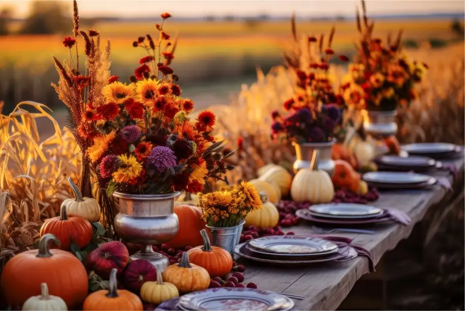 When fall comes around, it’s time to tone things down. Think earthy colors and soft materials and fabrics, as well as cozy rustic elements such as dried leaves or a few pumpkins and gourds here and there.