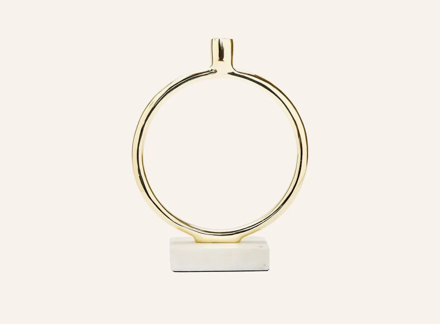 At first this may look like a striking sculpture or exquisite paper holder. But actually, this gleaming form is a candle holder. We love the contrast of the hardy marble block with the delicately thin gold ring.