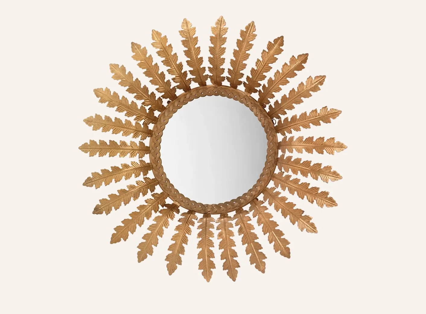 Give a nod to the iconic sunburst mirror with this unique take on the must-have Art Deco accessory. The surprising woven detail on the frame and the serrated leaves feel glam yet organically bohemian.
