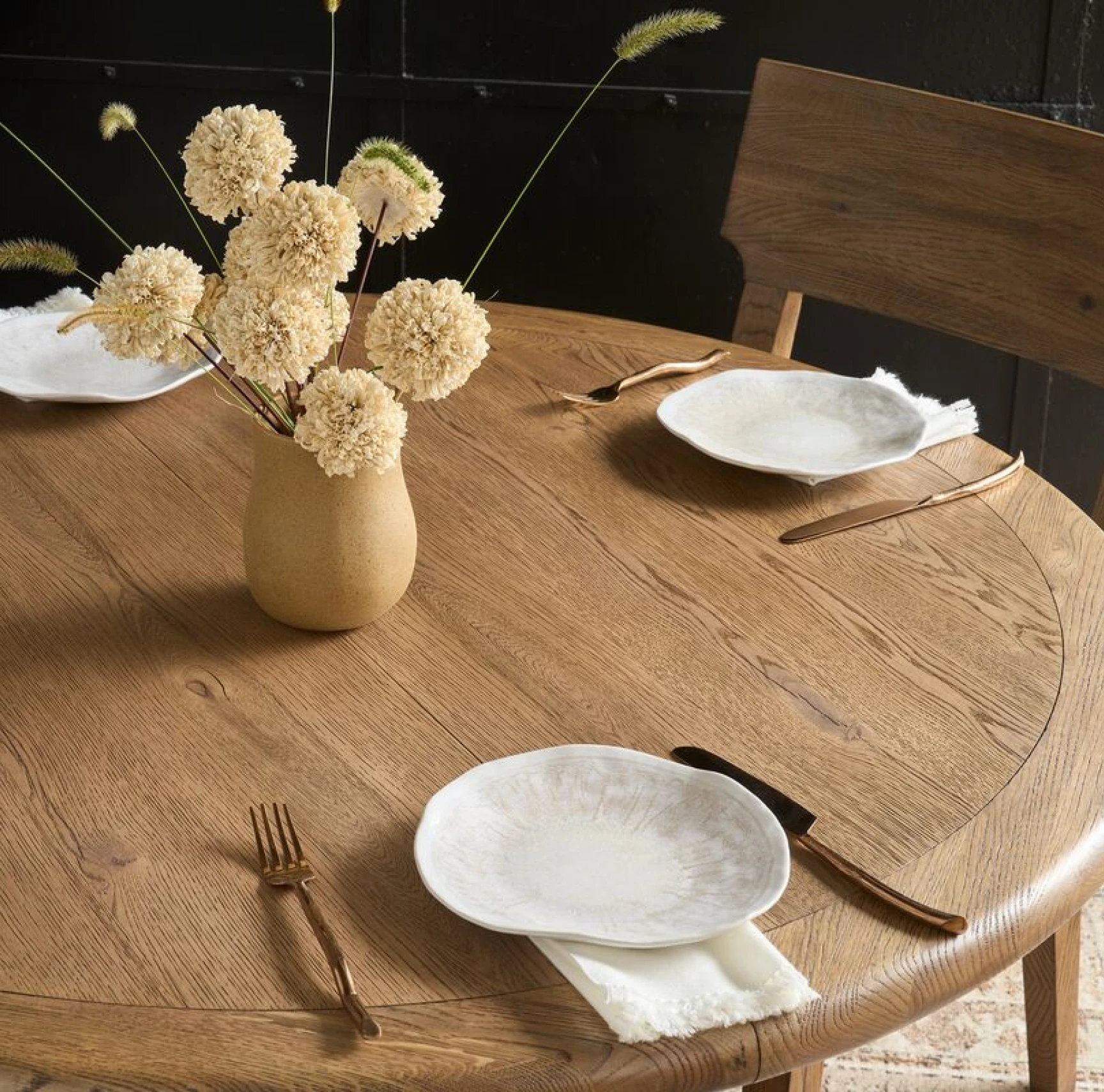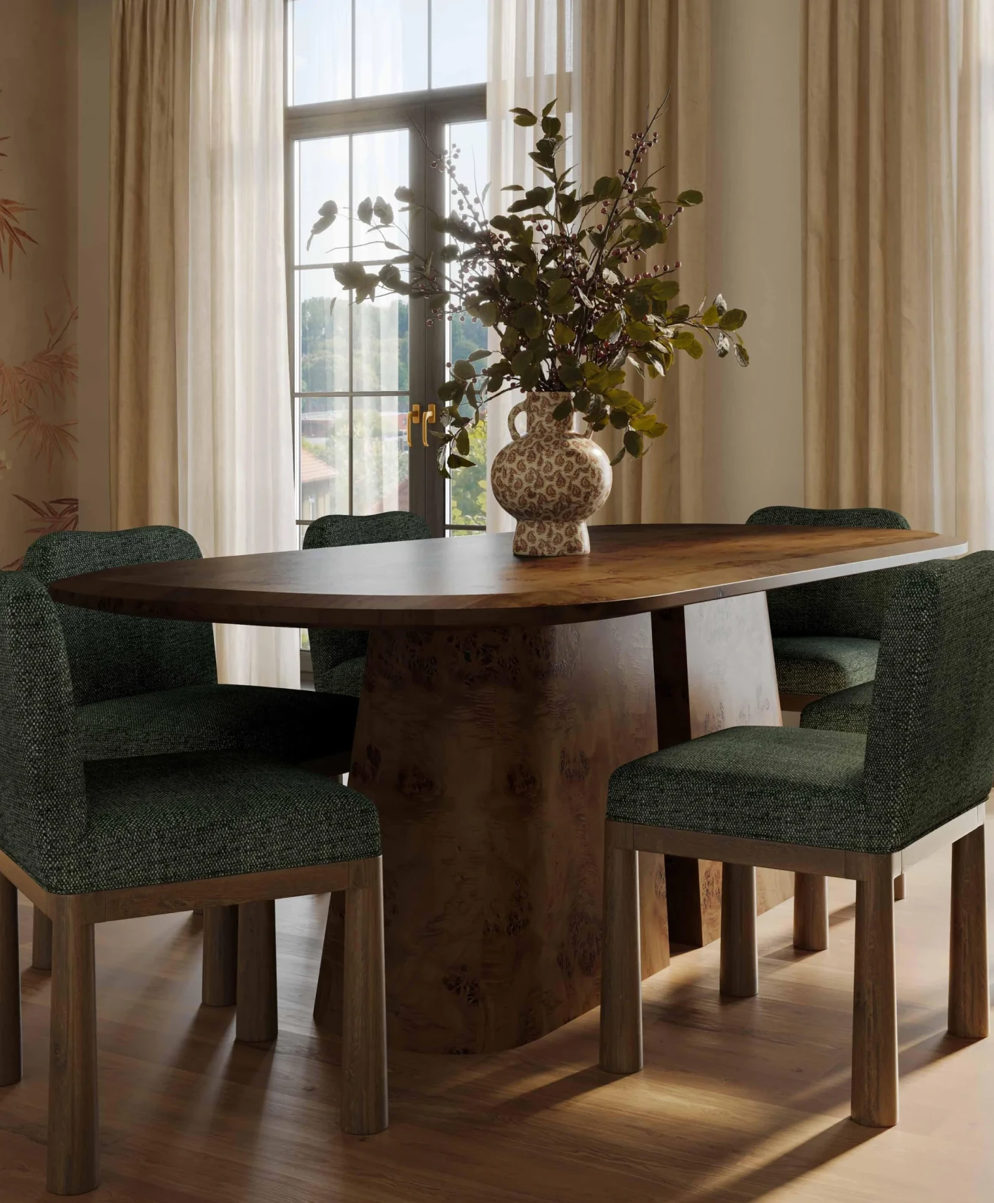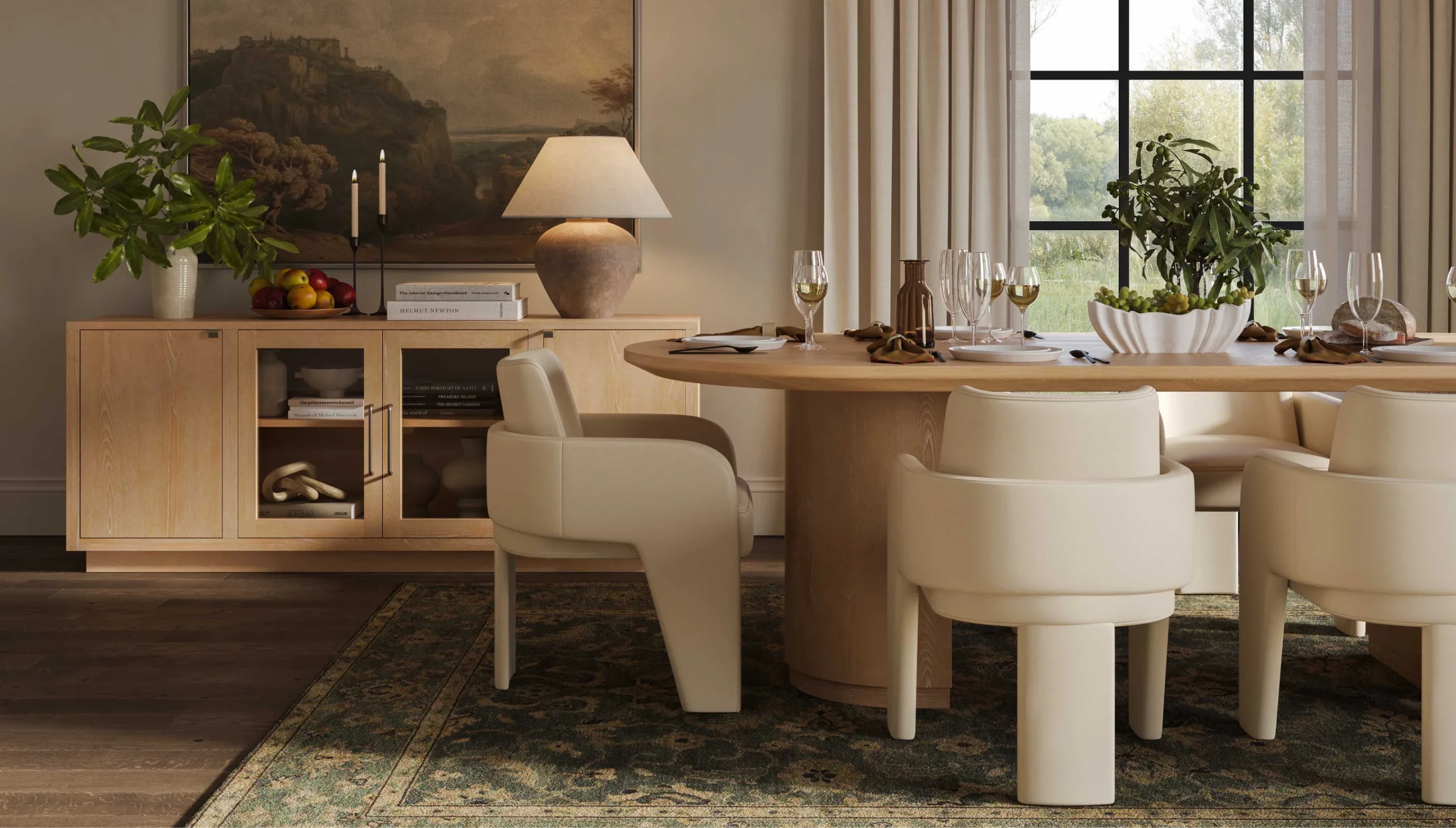 The dining table sets the stage for every gathering. Choose one that adapts easily to your guest list. An extendable table keeps things flexible, while a round pedestal shape maximizes space and encourages conversation. If your dining room doubles as a workspace or breakfast nook, pick materials that are both durable and stylish so it feels intentional in every setting.